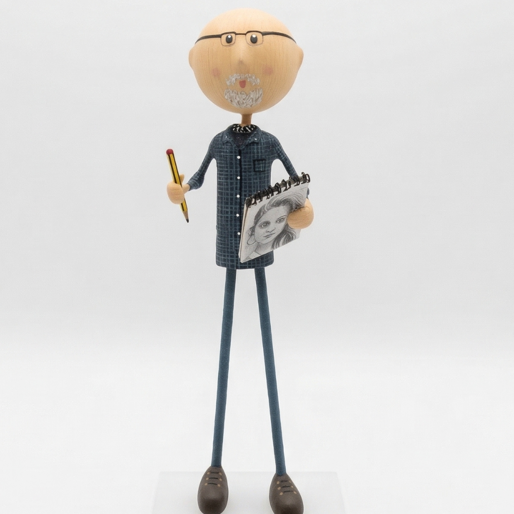 Capturem l’essència de cada persona: l’expressió de la cara, el pentinat característic i aquells detalls, com les ulleres, que la fan única.