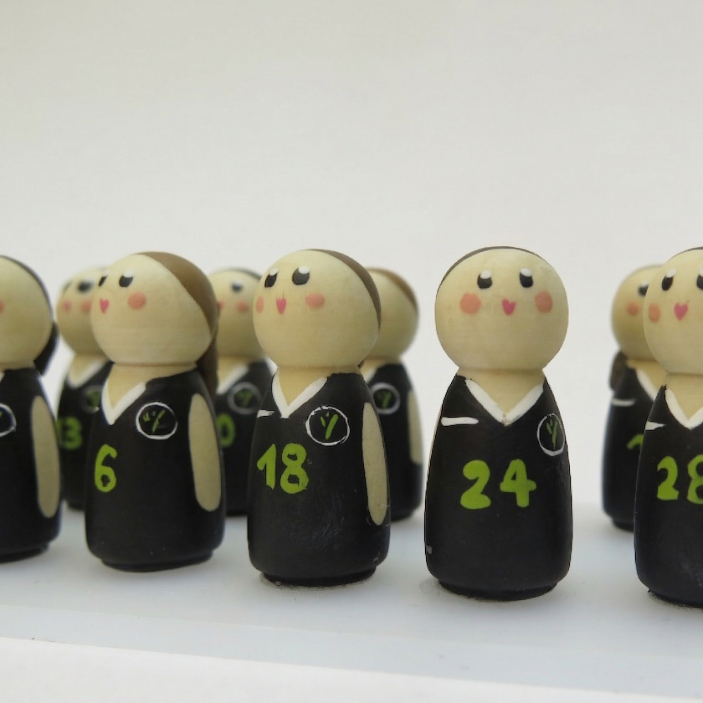 Podeu triar fer tots els membres de la mateixa mida o destacar l’entrenador/a amb una peça més gran, ideal si el regal va dirigit a ell o ella.